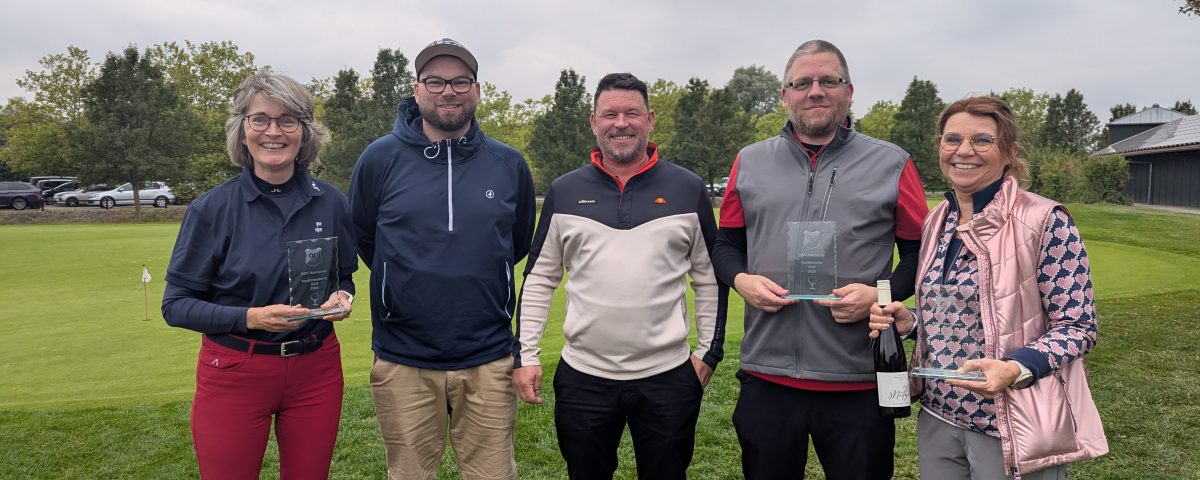 Wir gratulieren der siegreichen Mannschaft des Jahres 2025! Den begehrten Titel des Mannschaftsmeisters holte sich das Team von der AWO. Die Mannschaft, bestehend aus Jan Schwarz, Susanne Gabriel, Raphael Küper und Steffen Hellemann. Die Mannschaft erspielte sich mit einer Gesamtbrutto-Schlagzahl von 381 den Pokal.